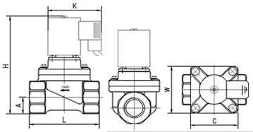 CPVC電磁閥所用CPVC材料符合環保要求,因此CPVC電磁閥是一種應用非常廣泛的新型工程塑料電磁閥。 產品型號 通徑 聯接方式 使用壓力(MPa) 最大耐壓(MPa) 流體溫度 Kv值 電壓范圍 電壓 TM51-15 15 G1/2 0~0.02MPa 1.0MPa 100℃ 3.6 ±10% TM51-20 20 G3/4 5 ±10% TM51-25 25 G1 8.5 DC24V TM51-32 32 G1¼ 13 TM51-40 40 G1½ 18 TM54-50 50 法蘭 30 TM54-65 65 法蘭 45 產品型號 TM51-15 TM51-20 TM51-25 TM51-32 TM51-40 聯接方式 G1/2〞 G3/4〞 G1〞 G1 ¼〞 G1½” L 70 80 100 120 130 H 132 137 147 171 180 W 63.5 63.5 74 94 94 C 63.5 63.5 74 94 94 A 16 19 26 30 32.5 K 92 92 92 94 94