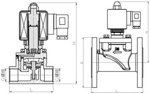斷電時,彈簧力把先導孔關閉,入口壓力通過旁通孔迅速腔室在關閥件周圍形成下低上高的壓差,流體壓力推動關閉件向下移動,關閉閥門。