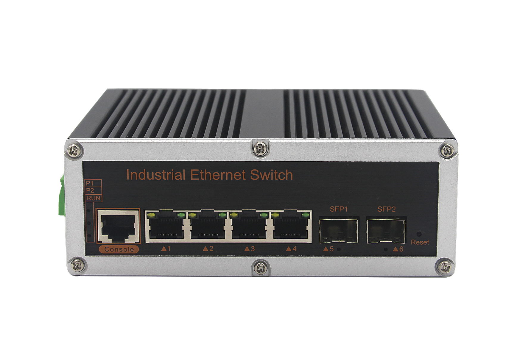 網管型千兆2光4電工業級以太網交換機,產品符合FCC、CE、ROHS標準。支持2個千兆光口和4個千兆電口,支持一路console口;支持工業現場所需的以太網二層協議,保證通信網絡的穩定性;該系列交換機采用低功耗、無風扇設計,確保無噪聲干擾,同時支持-40~85℃工作溫度和良好的EMC電磁兼容性能,保證在惡劣的工業環境中保持穩定的工作,為工廠自動化,智能交通,視頻監控等工業應用領域組建快速穩定的網絡終端接入網絡提供安全可靠的解決方案。護等級的外殼及 LED 指示燈,使之成為一個即插即用的工業級設備,為用戶的以太網設備聯網提供可靠、便捷的解決方案。