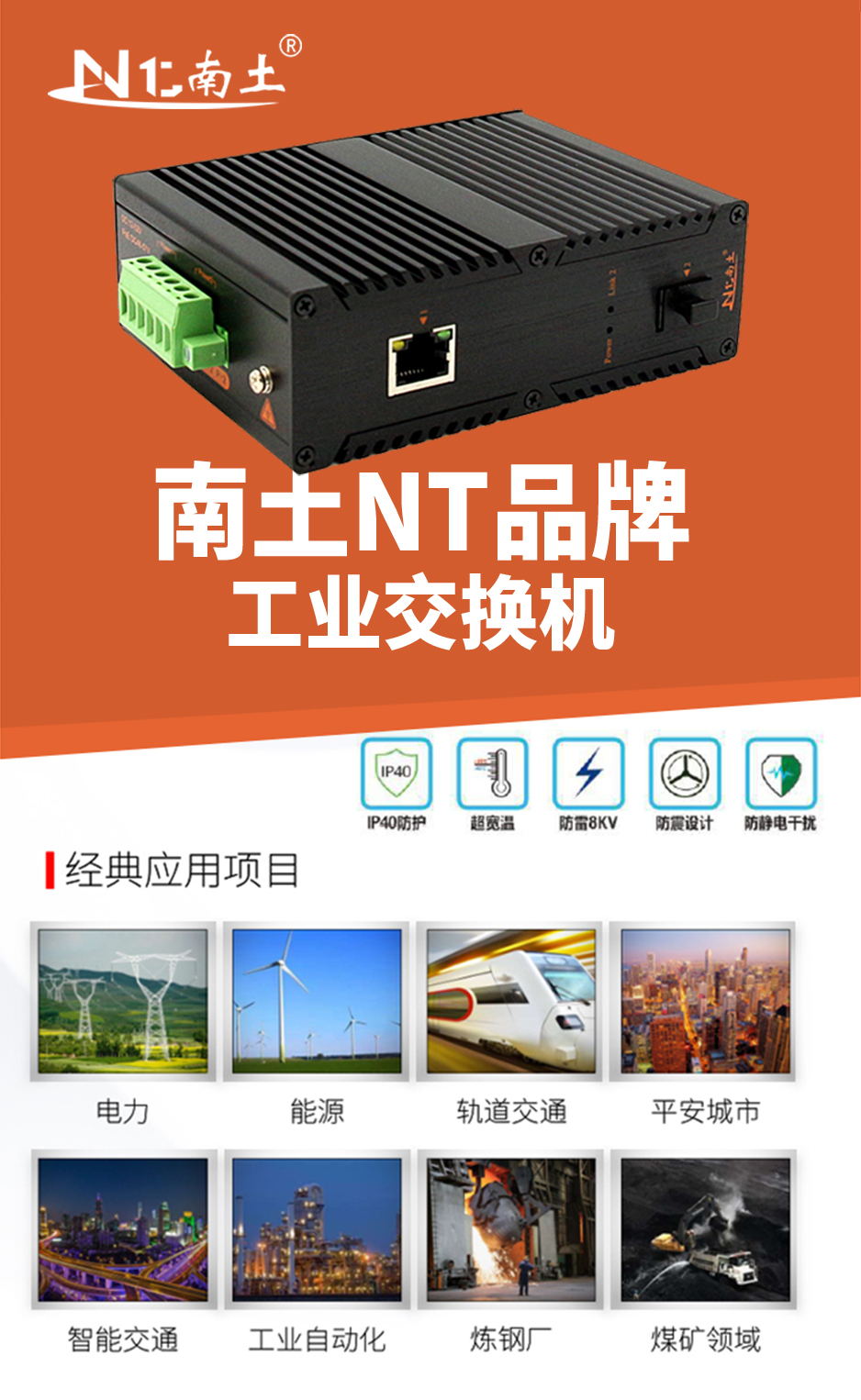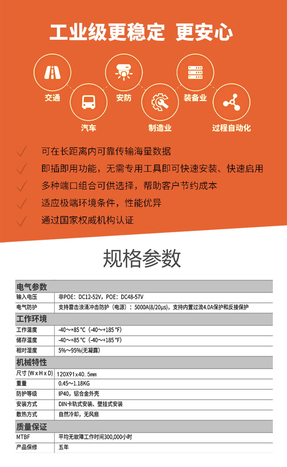 工業級POE(NT品牌)非網管1百光2百電(2POE),SC/單模單纖20KM(1550nm),導軌式-DC48~57V供電-寬溫(-40℃-85℃)-。默認不含AC電源適配器。 |