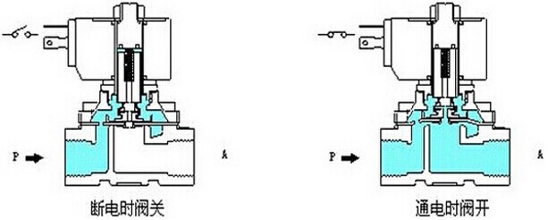 1、直動式電磁閥工作原理:通電時,電磁線圈產(chǎn)生電磁力把關閉件從閥座上提起,閥門打開;斷電時,電磁力消失,彈簧把關閉件壓在閥座上,閥門關閉。